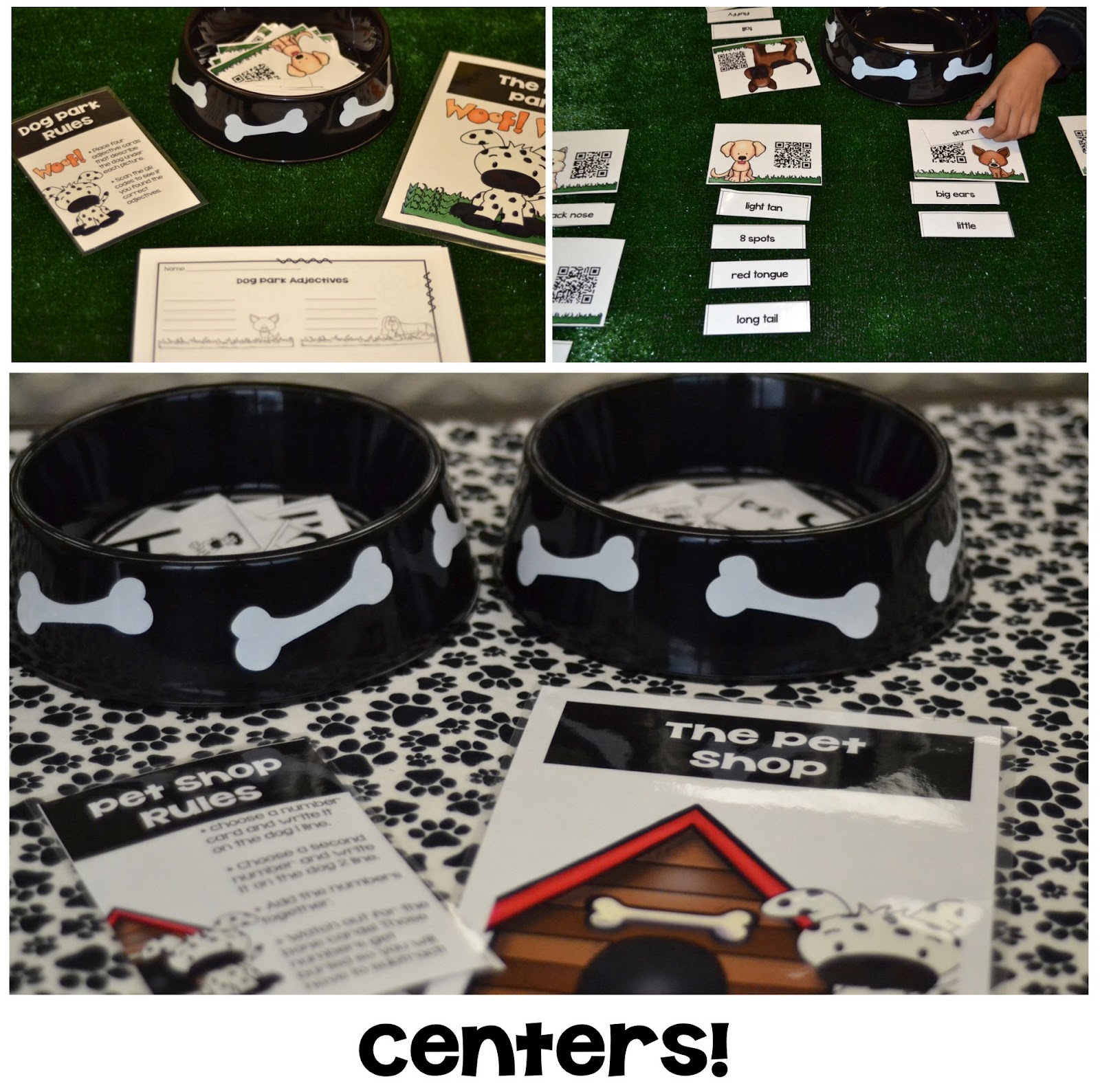 We even bought a few dog bowls for organizing the supplies at the centers because you can't have a classroom full of dogs and no dog bowls, right?!
